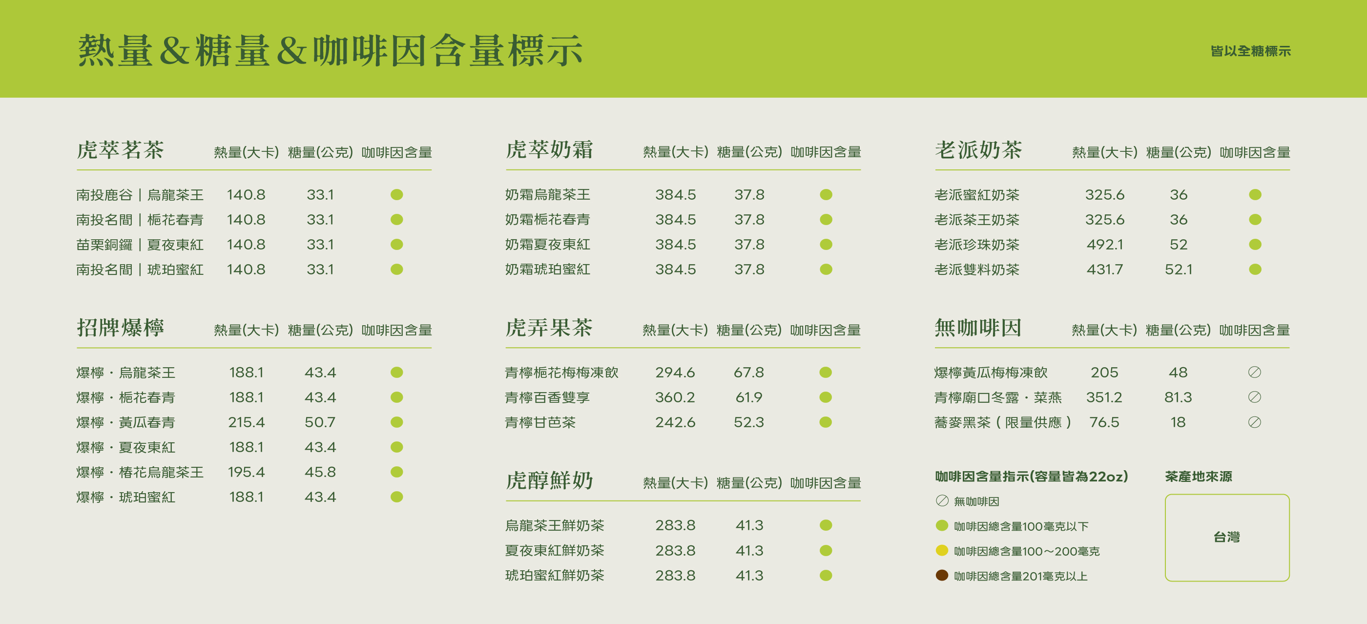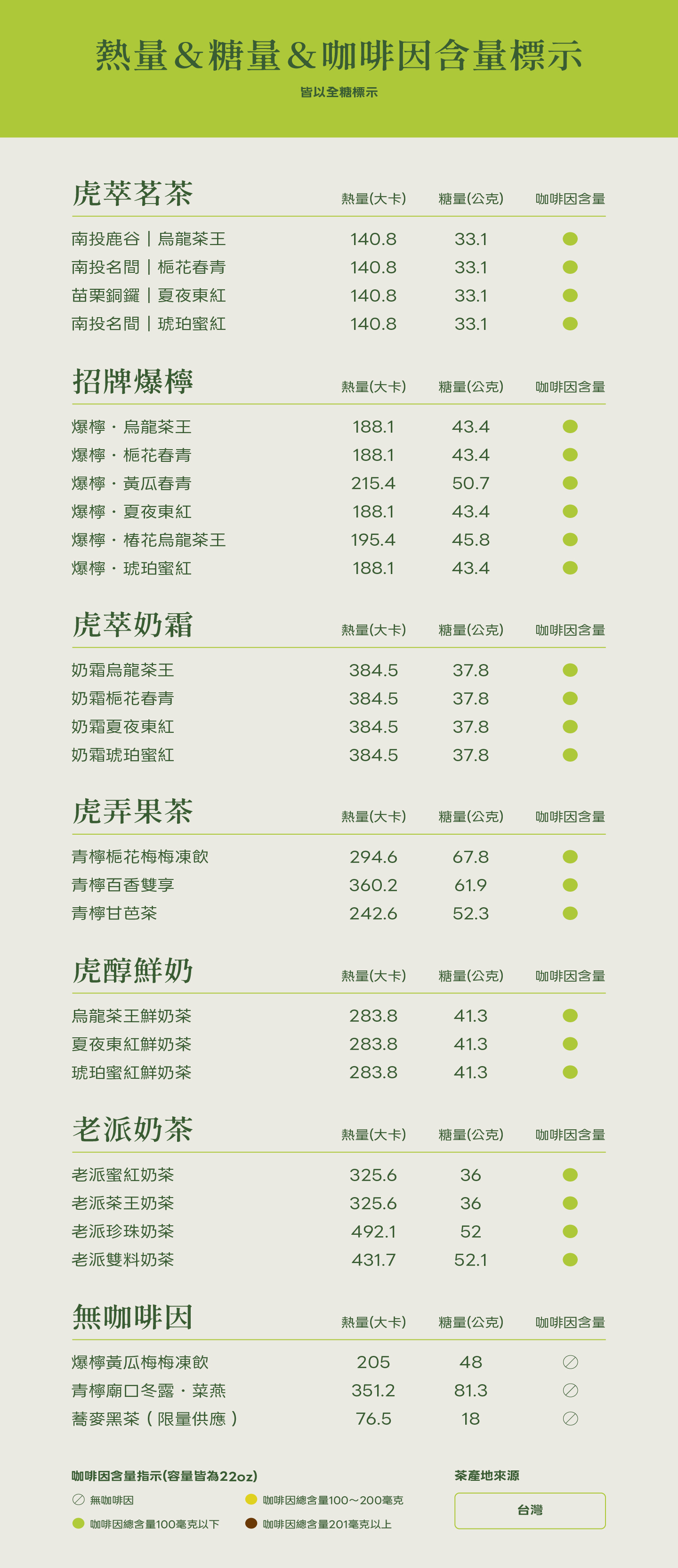 貳虎菜單 & 熱量表
